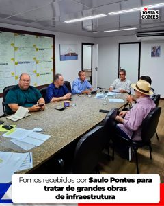Temos excelentes notícias para o nosso querido município de Tancredo Neves! Eu, o prefeito Quinha, o vice-prefeito Juscelino e o secretário de Planejamento, Ademar Barreto, tivemos uma audiência com o superintendente de Infraestrutura de Transportes, Saulo Pontes. O tema não poderia ser outro: grandes obras de infraestrutura que vão transformar o nosso município!