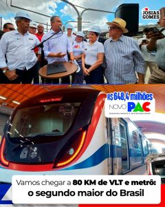 Durante a inspeção das obras do VLT, o governador Jerônimo falou com a imprensa e demonstrou toda a sua satisfação com os avanços: “Olha, eu estou muito feliz. Nós estivemos lá em Hortolândia para visitar esses trens, ver como estava a obra. Chegam dois carros, dois trens. No dia 26, chegam mais 17 trens; em 2027, mais 17; e em 2028, chegam os últimos, o que representará 100% de funcionamento do VLT. A expectativa nossa é que esses trens comecem a fazer testes no início do ano, mas, definitivamente, a partir de meados do ano, a gente já possa ver esses trens fazendo a linha até o Subúrbio”, afirmou.