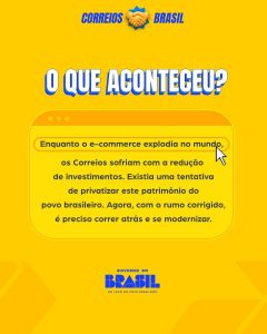 Nossa luta para impedir a privatização dos Correios no governo anterior valeu a pena! Conseguimos preservar uma das maiores empresas públicas do país – um patrimônio do povo brasileiro com função estratégica na logística nacional. E o melhor: o governo Lula vai investir R$ 20 bilhões no caixa da estatal por meio de uma operação de crédito.