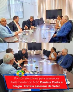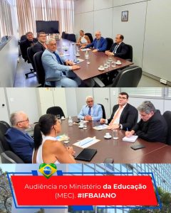 A segunda etapa da agenda foi no Ministério da Educação, onde a comitiva apresentou o projeto de expansão do IF Baiano de Guanambi em Caetité. Participaram da reunião Daniela Costa, da assessoria parlamentar do MEC, e Sérgio Gaudencio Portela de Melo, assessor especial da Secretaria de Educação Profissional e Tecnológica.