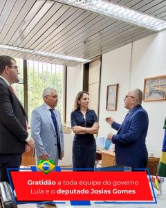 O prefeito Valtécio Aguiar agradeceu o apoio recebido: “Agradeço imensamente ao presidente Lula, aos nossos ministros e suas equipes pela atenção dedicada aos nossos pleitos. Meu agradecimento especial vai para o deputado Josias Gomes, que desde o início da minha gestão acreditou no nosso projeto de construir uma Caetité à altura da sua grandeza. A sua notoriedade abre muitas portas nos governos Lula e Jerônimo que beneficiam diretamente o povo de Caetité. Juntos, temos feito história; mais do que um deputado, tenho em Josias um amigo leal”.